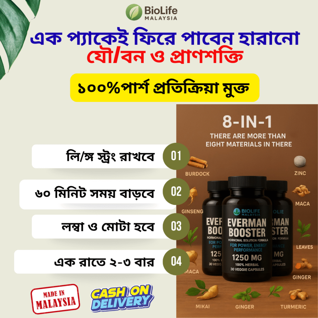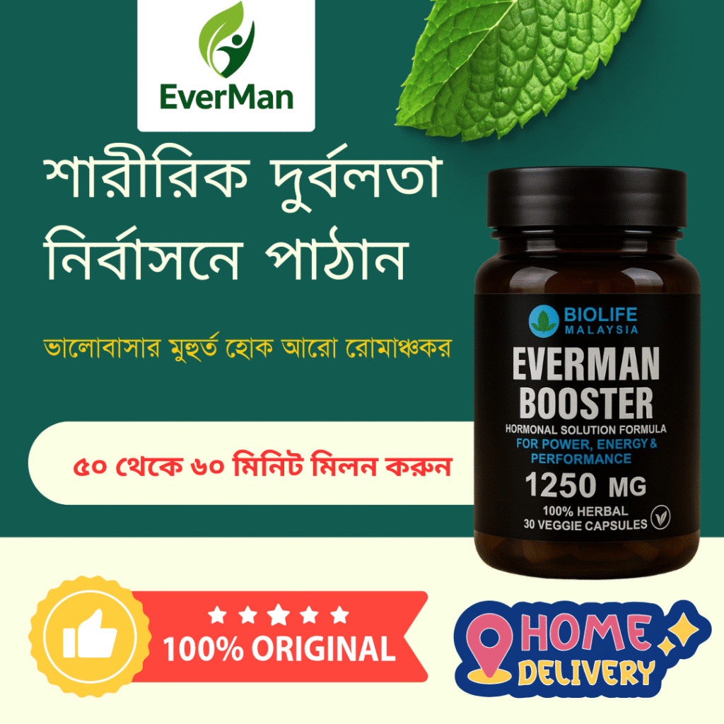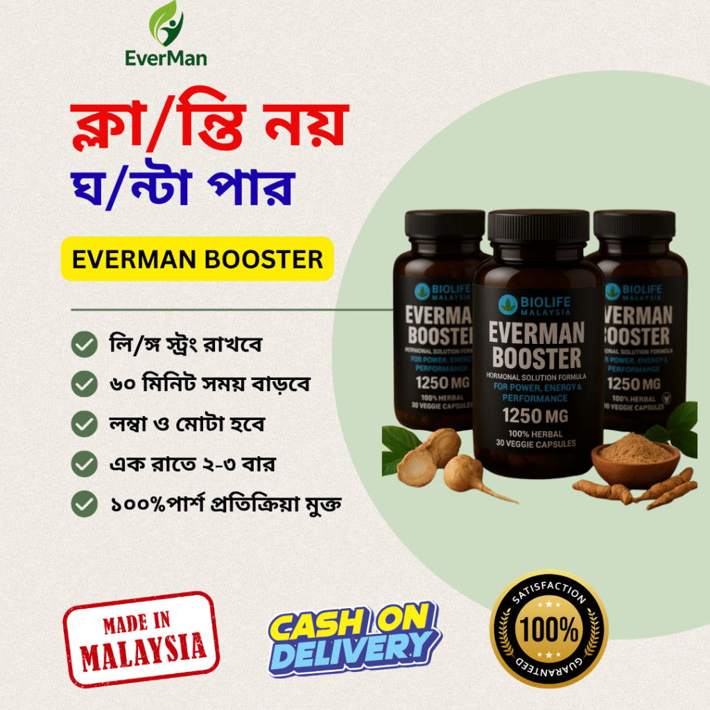 EverMan Booster হলো ৯০ দিনের ফুল কোর্স! একবার কিনে ৯০ দিনের কোর্স কমপ্লিট করে যৌন সমস্যা থেকে চিরদিনের জন্য মুক্তি পেয়ে আপনি হয়ে যান পুরুষত্বের রাজা! একবার কিনুন, সারাজীবন সুখী যৌন জীবন উপভোগ করুন!
